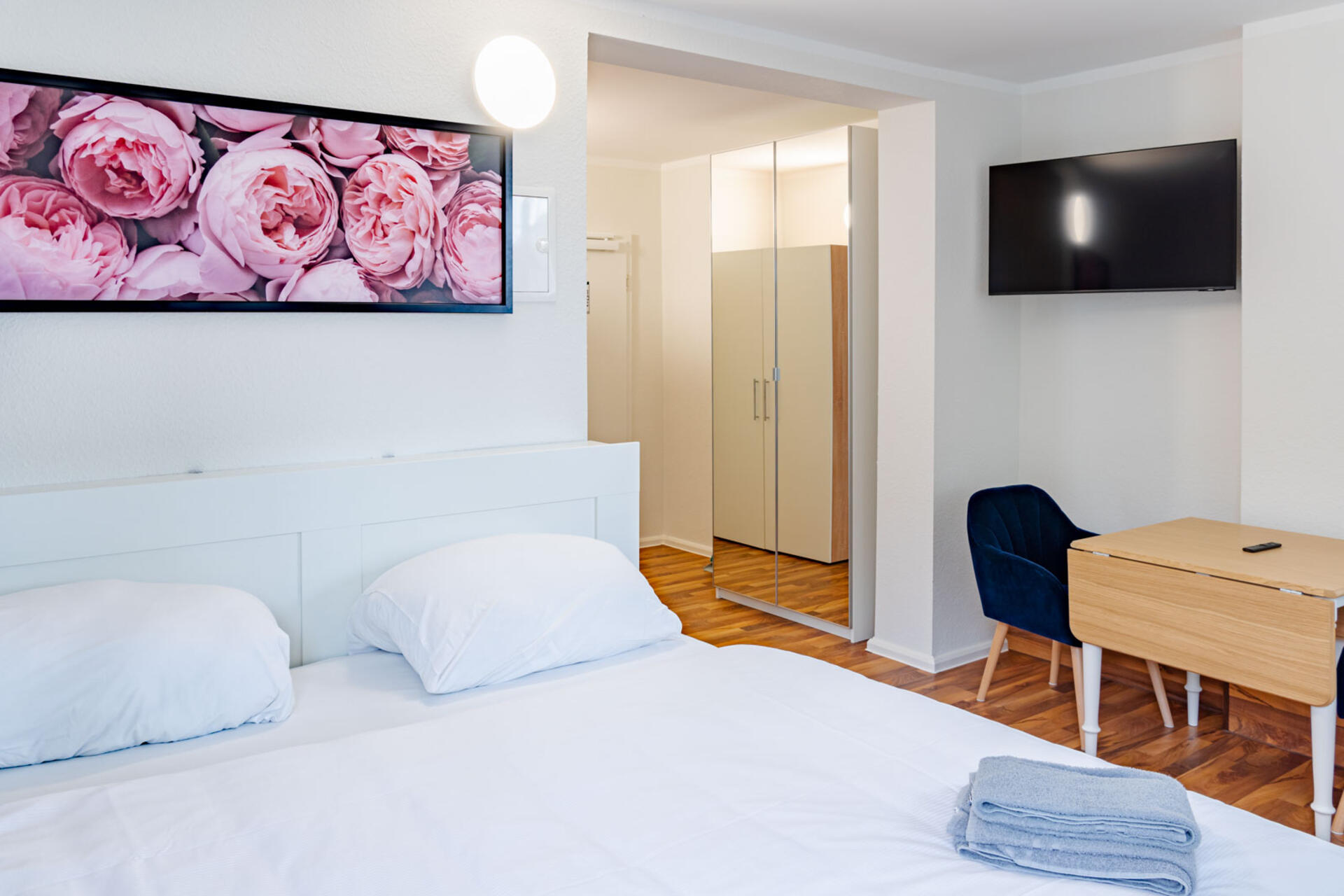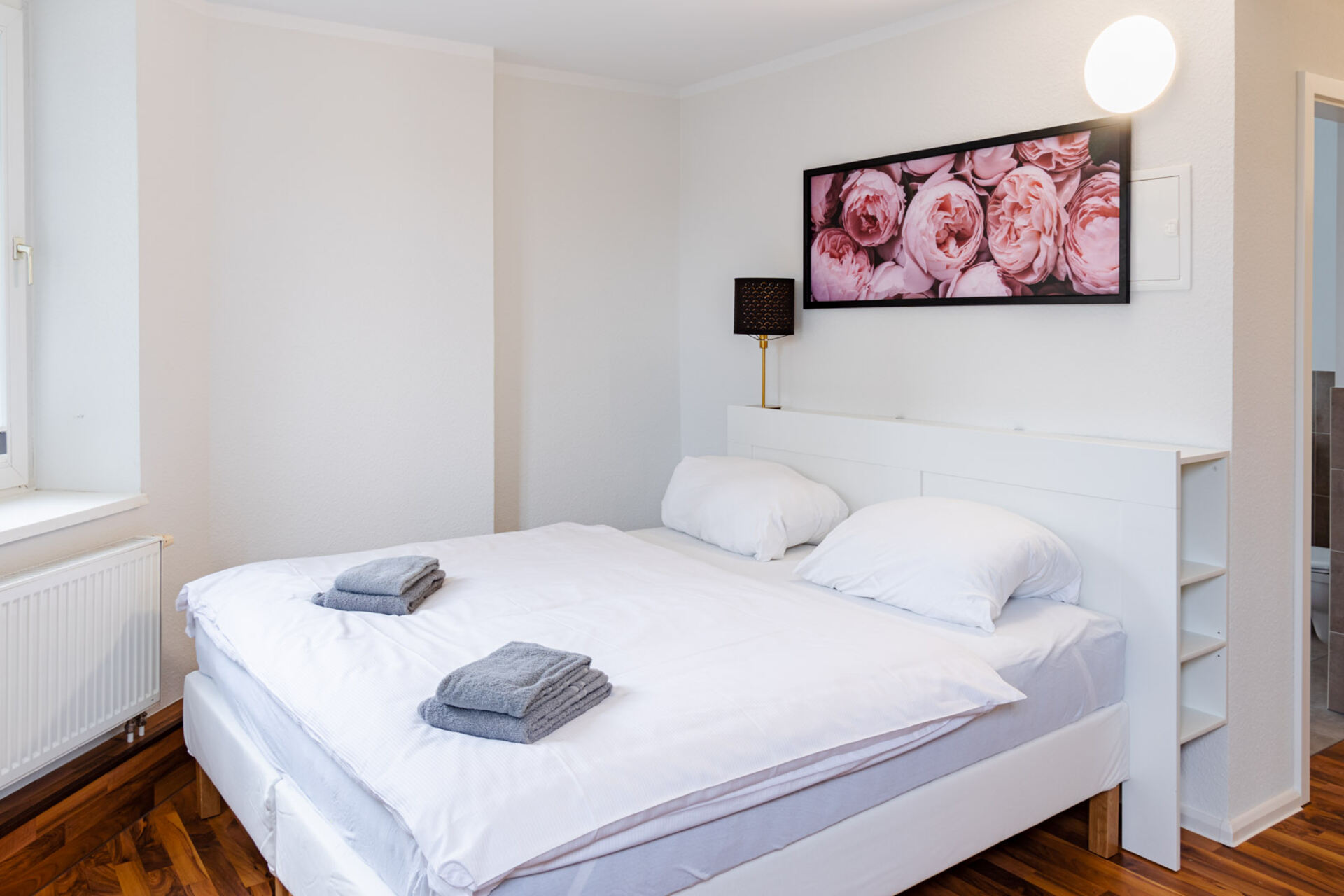 Das Apartment verfügt über ein bequemes Doppelbett mit frischer Bettwäsche, das dir nach einem langen Arbeitstag oder einem Stadtbummel erholsame Nächte ermöglicht.