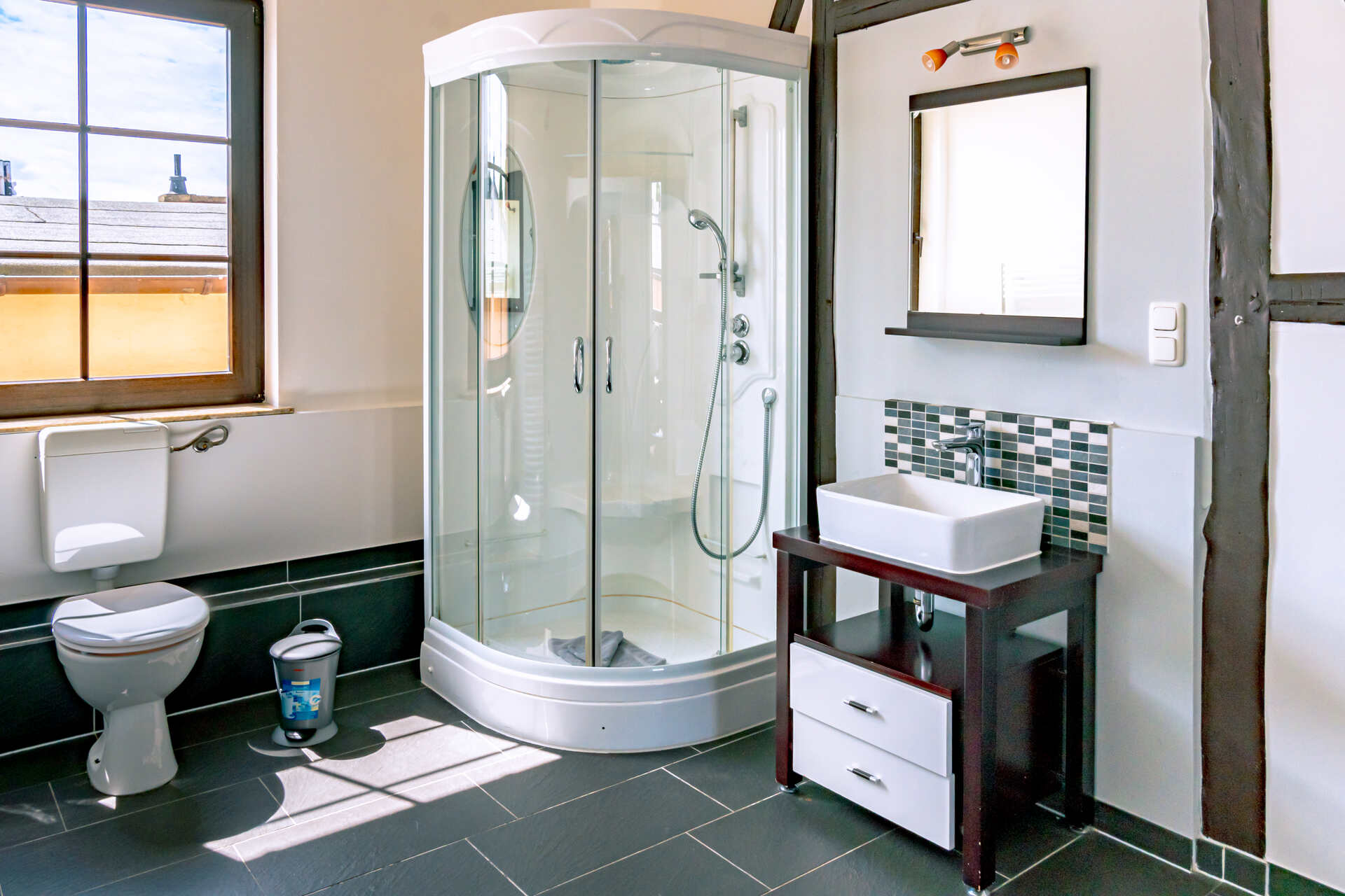 Ein besonderes Highlight ist das moderne Badezimmer mit Wellnessdusche – perfekt, um nach einem Tag am Meer zu entspannen.
