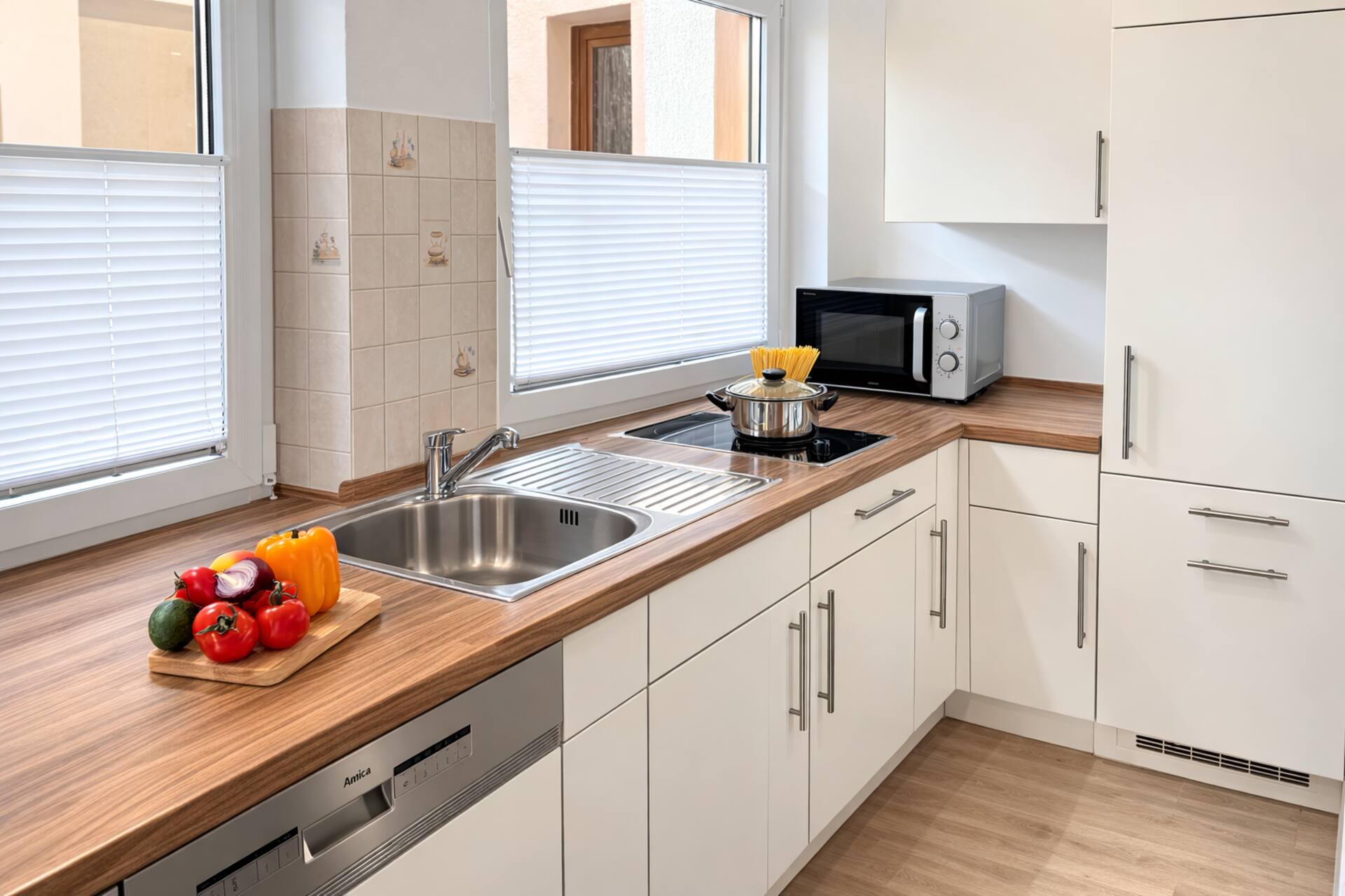 Die Küche bietet alles, was du für die Selbstversorgung brauchst:
